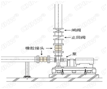一、請參照下邊的安裝圖例,將撓性單球體橡膠接頭安裝到水泵系統(tǒng)時,如果止回閥位于撓性單球體橡膠接頭之下安裝,那么泵啟動和停止時形成的水壓和水錘效應(yīng)都將對橡膠接頭產(chǎn)生不良影響。